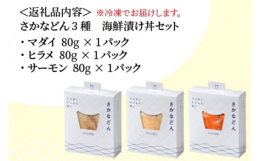 さかなどん 3種(マダイ・ヒラメ・サーモン) 計3パック(計240g)