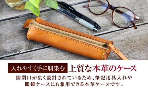 本革 ペンケース メガネケース 牛革 ヌメ革 レザー ギフト おしゃれ 手作り 職人 小浜市 文具 収納 日本製 工房 クラフト ブラック ブラウン レッド グリーン ブルー ライトブラウン プレゼント 6色展開 フウネレザーファクトリー 革製品