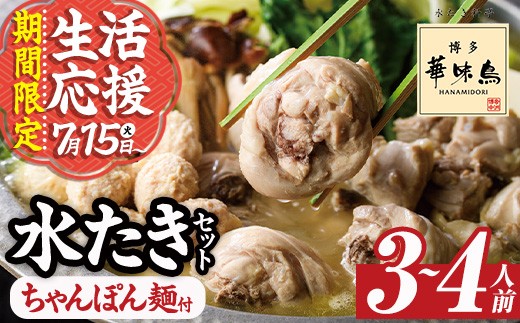 【期間限定】<先行予約受付中!2025年12月より順次発送予定>博多華味鳥 水たきセット ちゃんぽん麺付き (3~4人前)水炊き 鶏肉 鳥肉 とりにく 鍋 スープ つくね ポン酢 トリゼンフーズ<離島配送不可>【ksg1292-A12】【水たき料亭 博多華味鳥】