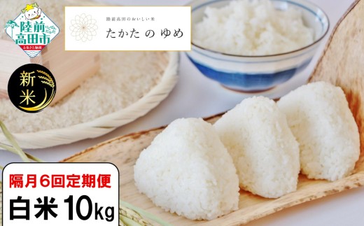 【隔月6回定期便】 令和7年産 新米 白米 10kg×隔月6回(2ヶ月に1回) お届け 品種:たかたのゆめ 【 米 お米 ライス 陸前高田市 オリジナル ブランド米 冷めてもおいしい お弁当 おにぎり ギフト 】 RT3086