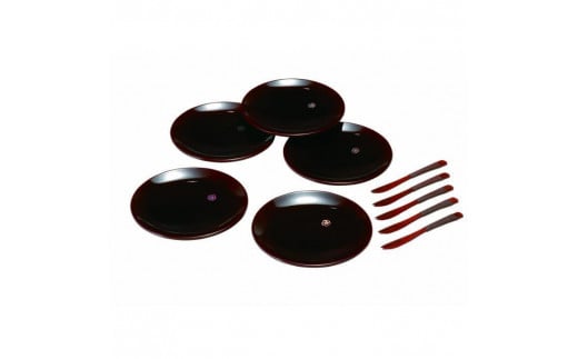 4.2寸 銘々皿 総溜 明月 (5枚組・フォーク付き)【YG125】
