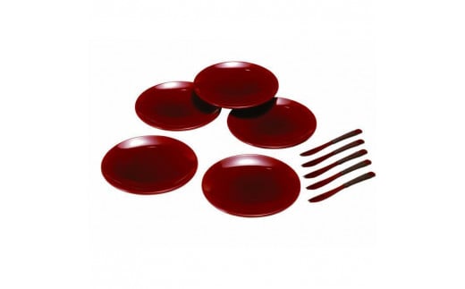 4.5寸 銘々皿 総春慶塗 (5枚組・フォーク付き)【YG128】