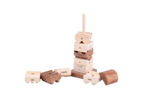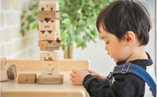 形を合わせないと重ねられないブロックで、4 種類の数字を学ぶことができます