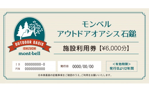 モンベルアウトドアオアシス石鎚「施設利用券」6,000円分