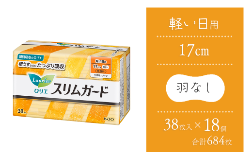 ロリエ スリムガード 軽い日用 38枚入り×18個セット 【合計684枚】 | 愛媛県西条市 生理用品 ナプキン 昼用 ロリエ スリムガード 無香料 生理用ナプキン サニタリー 備蓄 備蓄用 日用品 送料無料