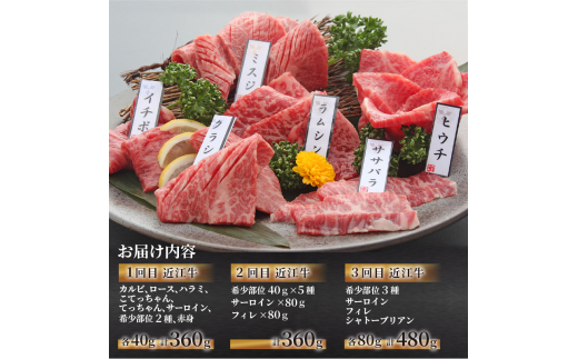 近江牛 焼肉 特上 盛り合わせ 定期便 3回 冷凍 シャトーブリアン A4 A5 ( 近江牛 サーロイン フィレ ヘレ 希少部位 ミスジ クラシタ イチボ ヒウチ ササバラ ラムシン 等 カルビ ロース ハラミ こてっちゃん 3ヶ月 赤身 和牛 黒毛和牛 ブランド 牛肉 近江牛 贈り物 ギフト 国産 近江牛 滋賀県 竜王町 岡喜 霜降り 神戸牛 松阪牛 に並ぶ 日本三大和牛 ふるさと納税 )