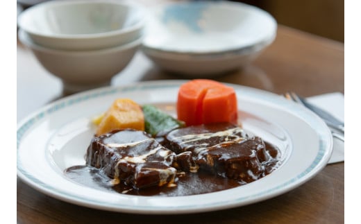 【5月配送】【「近江牛」ごろっと贅沢【洋風デミ煮込み】肉 牛肉 ブランド牛 三大和牛 和牛 黒毛和牛 保存食 レトルト おかず お惣菜 滋賀県 竜王