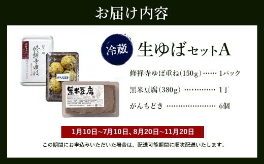 大黒屋 謹製 生ゆば セット A (修禅寺ゆば(重ね)150g×1パック・黒米豆腐 380g×1丁・がんもどき 6枚) 【伊豆 修善寺 湯葉 豆腐 がんも 豆乳 ゆば 重ね 黒米豆腐 がんもどき 濃厚 味わい 甘味 木綿豆腐 手作り 修禅寺 水 大豆 国産大豆 豆乳 古代米 黒米 お土産 お誕生日 御歳暮 御中元 父の日 母の日 】 008-002