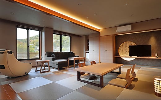 こちらの宿泊券で「 〇久スイート露天風呂&シャワーブース」「〇久スイート露天風呂&ダイニング」「〇久スイート露天風呂&バリアフリー」の3種類のお部屋タイプからお選びいただけます。(〇久プレミアムスイートのお部屋にはご使用になれません)