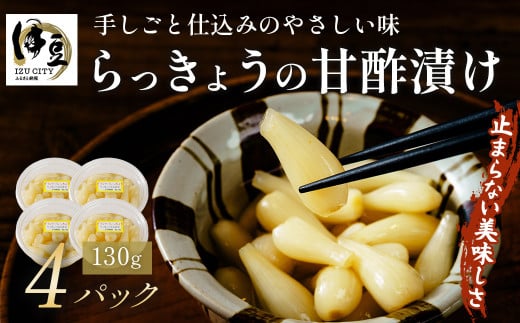 【数量限定】伊豆天城農園 グランマ 手作り らっきょう 甘酢漬け(130g×4パック) | 手作り 安心 丁寧 無添加 健康 らっきょう らっきょ ラッキョウ 天然素材 昔ながら 安全 自家栽培 美味しい 絶品 静岡 伊豆 | 015-008