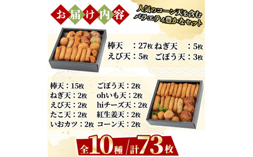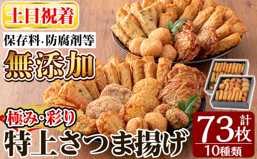 a283-02 <土日祝着分>特上さつま揚げ極み・彩りセット合計73枚(全10種類)【薩摩のまごころ】姶良市 さつまあげ 薩摩揚げ 惣菜 おかず ギフト 贈答用