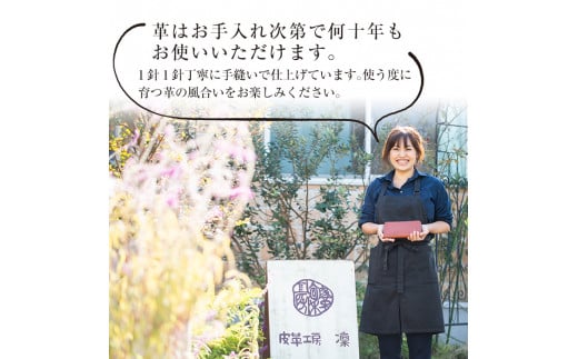 本革を使用し、手縫いで作成しております。長く使用するとエイジングし、より良い品へと変化します。ぜひお楽しみください。