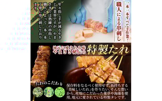 a823 やまさきの焼き鳥食べ比べ(計30本)【やまさき】姶良市 肉 鶏肉 鳥肉 焼鳥 たれ タレ 塩 しお もも 皮 とり皮 ぼんじり しそつくね せせり 小肉 豚 砂ずり 食べ比べ 冷凍 小分け パック 加工品 調理済 総菜 おかず バーベキュー