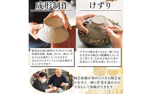 a977 白薩摩 手びねり陶芸体験「成形制作・けずり」コース【加治木陶昌窯】姶良市 鹿児島 陶芸 とうげい 体験 食器 手作り 制作体験 オリジナル皿