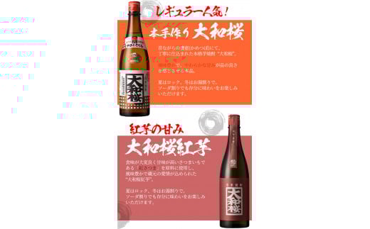 焼酎 「大和桜」 「大和桜紅芋」 720ml 各1本 四合瓶 2本セット + 大和桜 オリジナルグラス セット(黒文字・赤文字)各1個 鹿児島 大和桜酒造 の 本格芋焼酎 飲み比べ 【A-1322H】