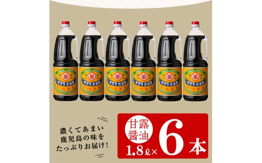 こいくち甘露醤油(1.8L×6本)セットB! 老舗吉村醸造の醤油 国産 九州 鹿児島産 九州醤油 天然醸造 だし醬油 しょうゆ 濃口 甘露 甘め 甘口 調味料 常温 常温保存 ギフト【サクラカネヨ】【A-004H】