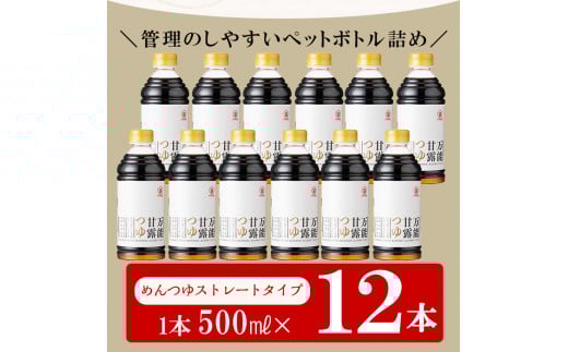 万能甘露つゆ(めんつゆ ストレート タイプ) 500ml×12本 !国産 九州産 鹿児島県産 万能調味料 めんつゆ ストレート お料理の味付けにもオススメ!【A-341H】