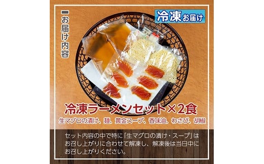 冷凍ラーメンセット(生マグロの漬け、麺、黄金スープ、香味油、わさび、胡椒)×2食