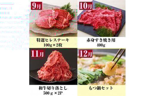 【12か月定期便】鹿児島県産 黒毛和牛 食べ尽くし セット 特撰ヒレステーキ や すき焼き用ロース、プリっプリ の 丸腸や もつ鍋セット など 毎月、少しの贅沢をお届けします! 【E-142H】