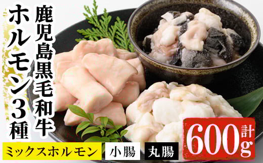 鹿児島県産 黒毛和牛 ホルモン 3種 盛合わせ 600g(小腸 200g 丸腸 200g ミックスホルモン 200g) 冷凍 小分け 国産 鹿児島県産 黒毛和牛 ミックス ホルモン 焼肉【A-1460H】