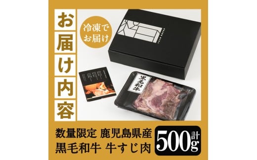 鹿児島県産 黒毛和牛 牛すじ 500g(500g×1P)A4等級以上!冷凍 小分け 国産 鹿児島県産 の 黒毛和牛 牛すじ カレー おでん にもおすすめ【A-1461H】