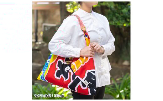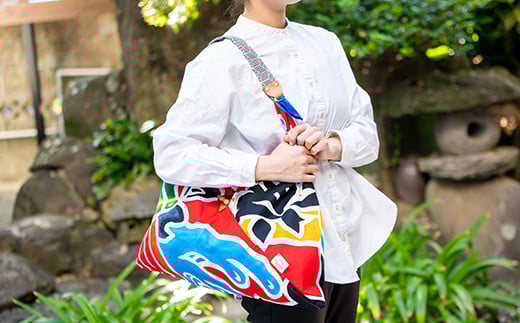 染職人の技が光る大漁旗柄の刷毛染めあづま袋!ベルトをつけてショルダーバックにも!