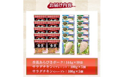 香薫あらびきポークとサラダチキン2種 <プレーン>+<ハーブ>の詰合せ! 鹿児島アソートセットC 冷蔵 高タンパク ヘルシー ダイエット 筋トレ にもオススメ!【A-1780H】