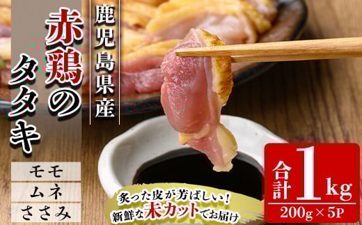 鹿児島県産 赤鶏のタタキ〈モモ・ムネ・ささみ入り〉(合計1kg・200g×5P) いちき串木野産 の 赤鶏タタキ! モモ・ムネ・ささみ が楽しめます!【A-1842H】