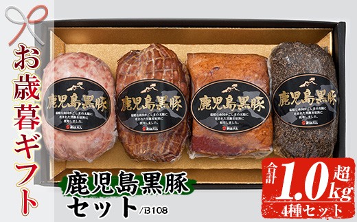 【令和7年お歳暮期間限定】鹿児島 黒豚 4種 セット(黒豚炭火焼 225g ポークソーセージ 300g ペッパーポーク 300g ベーコンブロック 250g)御歳暮 ギフト B-108【SA-298H】