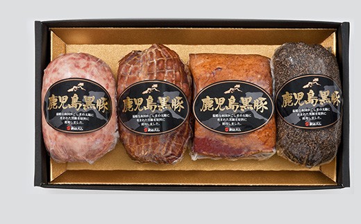 鹿児島黒豚をベーコンやソーセージなど4種類の加工品を詰め合わせにしました♪