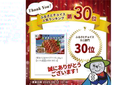 『訳あり』なのに魅力的!オオズワイガニをたっぷり2kgお届け!