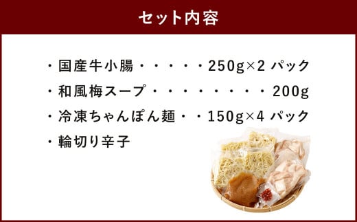 梅香る和風スープに厳選した国産牛小腸のみを使用したもつ鍋です。