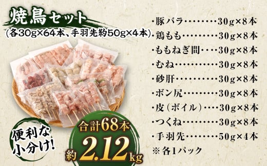 【1串ずっしり30g】本場博多の九州産 焼鳥セット 計68本 焼鳥 焼き鳥 串 串焼き セット 詰め合わせ 冷凍 福岡県 太宰府市