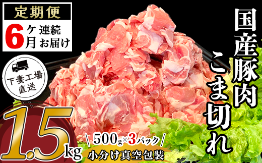 【定期便6回】国産豚肉こま切れ1.5kg(500g×3P)を6ヶ月連続でお届け♪