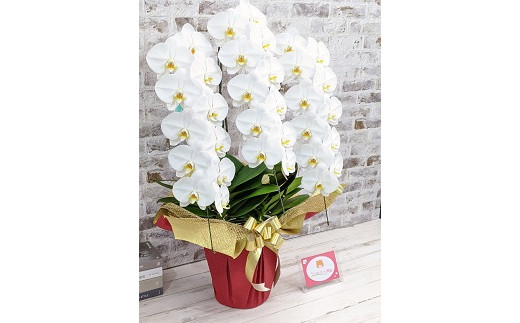 この3本立ての胡蝶蘭はボリュームとバランスが整っており、飾る場所を選ばないスタイリッシュな一鉢です。ちょっとした贈り物やご自宅のインテリアとして胡蝶蘭の白大輪を飾りたいという方のために作られた商品です。