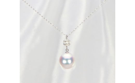 645 【真珠科学研究所花珠鑑別書付】Pt あこや本真珠8.0mmup ダイヤモンド0.15ct ペンダントネックレス