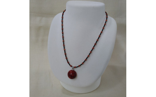 1060 珊瑚ネックレス・ドーム(珊瑚・ブラックスピネル)  アフリカ珊瑚 イソバナ珊瑚 珊瑚ネックレス ブラックスピネル 贈り物 還暦祝い 赤珊瑚 カジュアルアクセサリー ネックレス 珊瑚ペンダントトップ 3月誕生石 母の日 敬老の日プレゼント ご褒美アクセサリー リーズナブル装飾