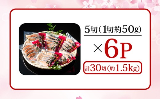 7. A-11009 無添加甘塩天然沖獲れ鮭5切×6P(計30切、約1.5kg)