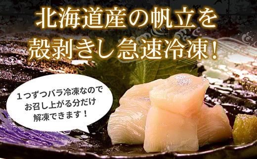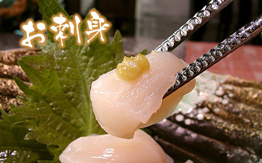 お刺身用ほたて貝柱です。お刺身のほか、バター焼き、フライ、カルパッチョ、サラダなどでお召し上がりいただけます。