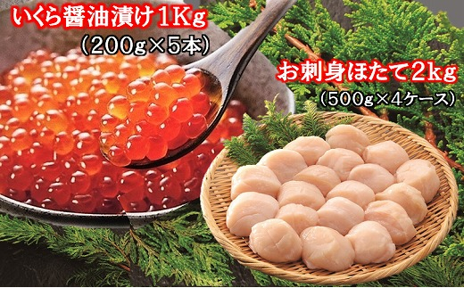 【名称】いくら醤油漬け1kgとお刺身ほたて2kg