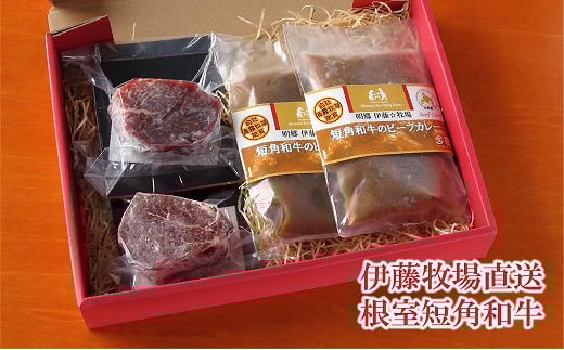C-13004【12/17まで年内配送】 【北海道根室産】短角和牛ヒレステーキ150g×2P、ビーフカレー2P