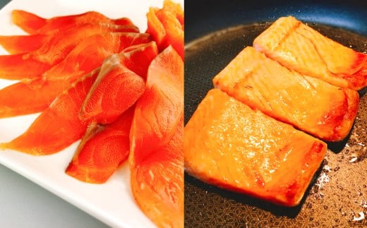 【内容量】サーモンスモーク仕立て6~12P(計1.5㎏)、とろサーモンハラミ燻製焼き1kg