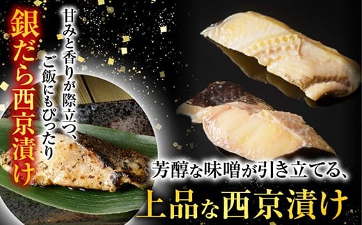 【内容量】銀だら粕漬1切(約110g)×4P、銀だら西京漬1切(約110g)×4P