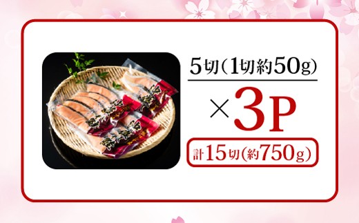 G-11037 無添加甘塩天然沖獲れ鮭5切×3P(計15切、約750g)