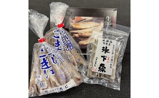 【内容量】まるごと骨まで食べれる氷下魚30g×1袋、生干し氷下魚200g×2袋、生干し氷下魚500g×1箱