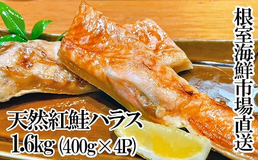 A-28263【年内配送可】 根室海鮮市場<直送>天然紅鮭ハラス約400g×4P