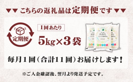 【1ヶ月毎11回定期便】阿蘇だわら 15kg(5kg×3袋)熊本県 高森町 オリジナル米