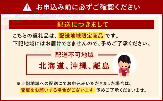 ※上記地域への配達にてお申し込みをいただいた場合、変更をお願いする場合がございます。予めご了承ください。