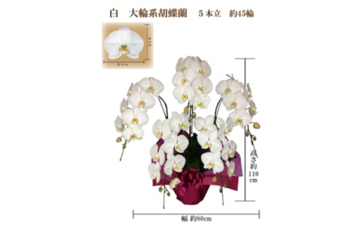 胡蝶蘭 5本立 45輪(1本当たり9輪以上の花とつぼみ)のお礼品です。