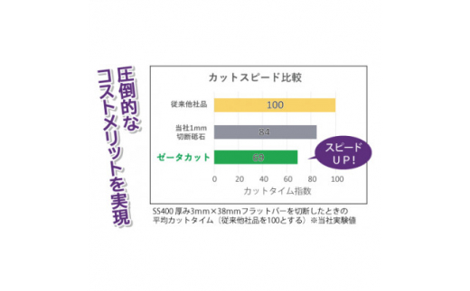 ●一般砥粒を使用した従来の切断砥石と比べ、カットスピードが速く作業効率がアップします。